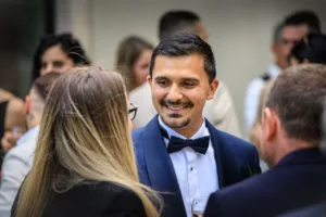 Un instant de partage et de convivialité durant le vin d’honneur au Château des Broyers. Adélaide et Laurent profitent de leurs proches dans ce cadre magnifique, sous une lumière douce de journée couverte. Les mariés Adélaide et Laurent trinquent avec leurs invités pendant le vin d’honneur.