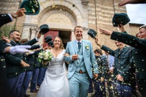 Photographe mariage Mâcon – Photos de sortie d’église, joie authentique – Greg