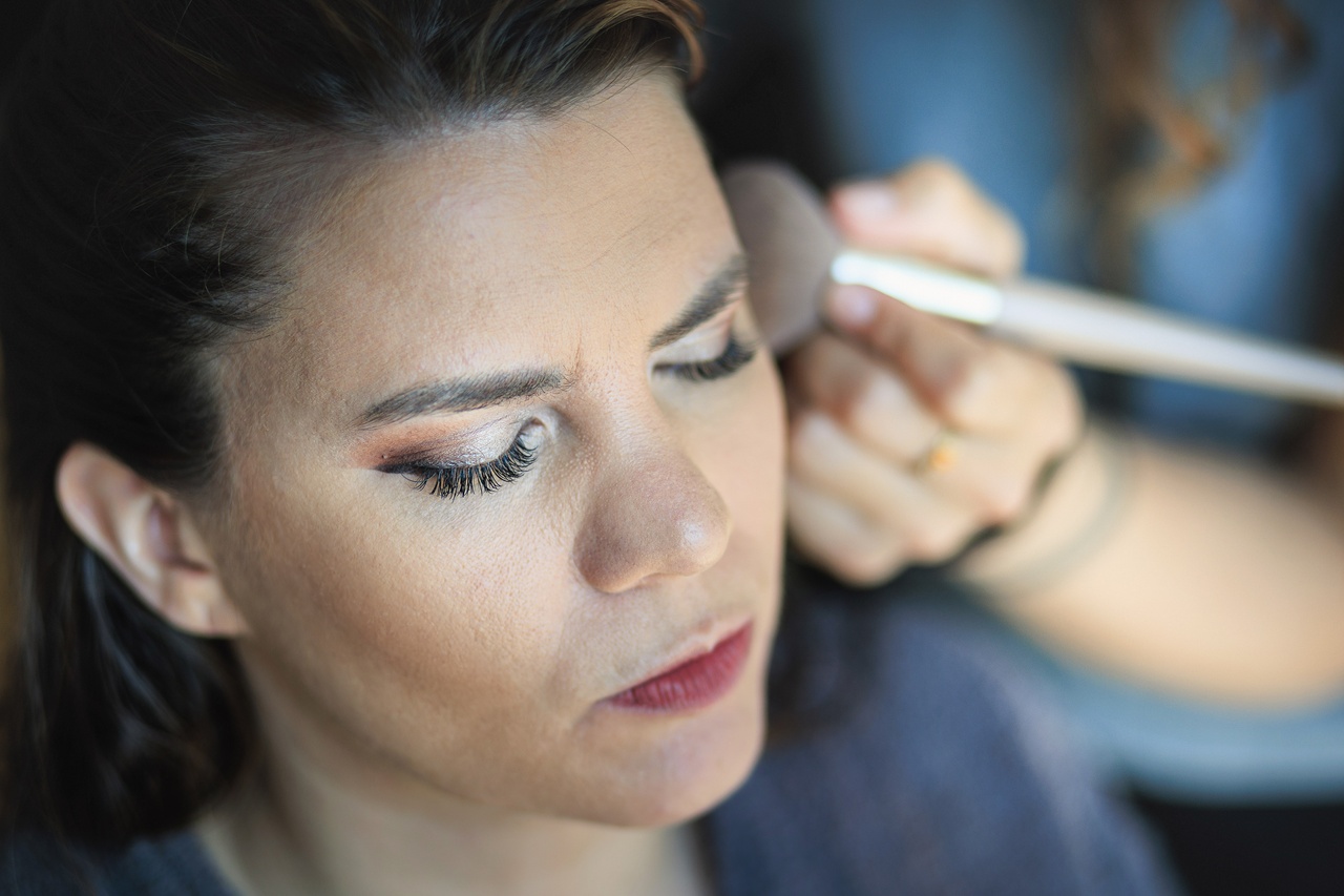 Gros plan sur la mise en beaute de la mariee Sonia. Un moment de calme et de concentration capture par le photographe professionnel avant la ceremonie.